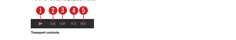 All Deck Types contain the same transport controls, which are used for playing back tracks with TRAKTOR’s internal playback mode.